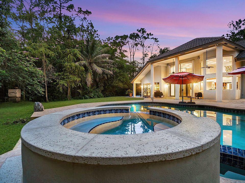 Discover luxury in Loxahatchee's premier 5-acre estate near Palm Beach International Equestrian Center. With 5,450 sq.ft. of elegance, this home features majestic gates, a new driveway, a sun-drenched living room, and seamless indoor-outdoor living. Enjoy a 10-foot deep saltwater pool, spa, and stamped concrete patios. Highlights include granite kitchen counters, top appliances, a luxurious owner's suite with spa-like bath and pool access, chestnut flooring, and modern glass stairwell railings. Boasting a 40kw generator, superior construction, and the possibility of a 6th bedroom/office, this estate offers serenity and sophistication. A dream for those seeking the ultimate in luxury and privacy. ***Horse stables are renderings only ***