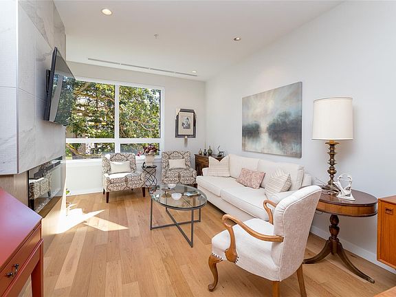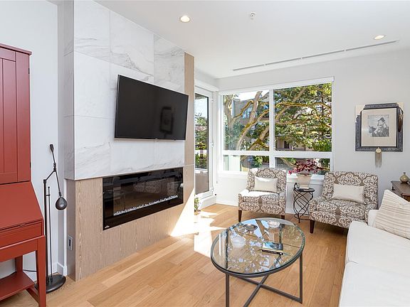 Welcome to Bellewood Park, an award-winning community by Abstract, set among majestic heritage Garry oaks on two acres of parkland in historic Rockland. Thoughtfully designed to bring nature to your doorstep, this steel & concrete building offers lasting quality and peace of mind. This Junior 2-bedroom, 2-bath home boasts over 800 sq. ft. of finished living space with hardwood floors, air conditioning, custom closets and a bright open-concept layout. The gourmet kitchen features custom cabinetry, a Wolf gas range, Fisher & Paykel French door refrigerator and double-drawer dishwasher. The spacious primary includes a walk-in closet, while the spa-inspired bathroom offers in-floor heated tile. Step outside to your private heated balcony for outdoor enjoyment year-round. Pet friendly, with secure underground parking, storage locker, bike & kayak areas. Walk to downtown restaurants, Cook Street Village and Dallas Road to enjoy ocean views and seaside paths.