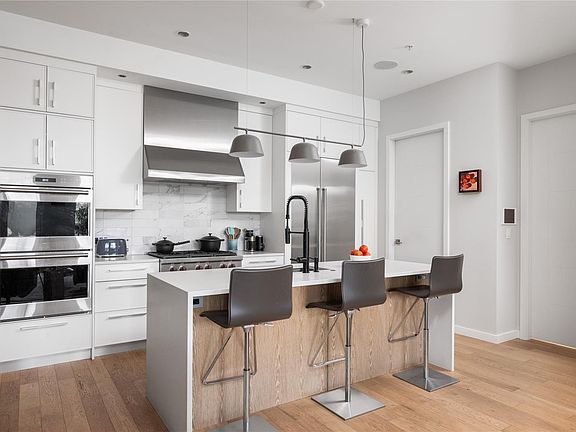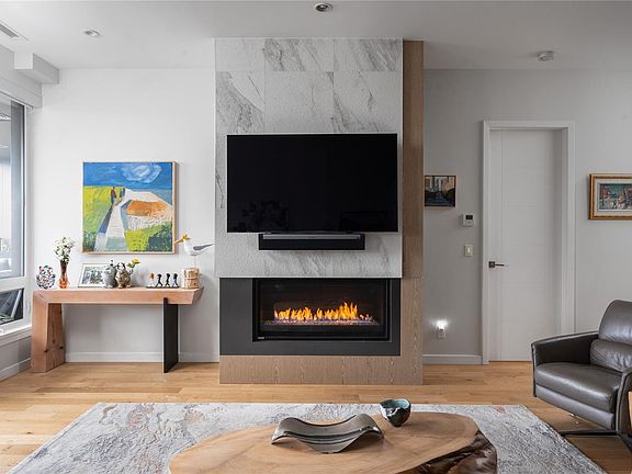 Embrace luxury living with this opulent sub penthouse at Bellewood Park, a masterpiece by award winning Abstract Developments. This fully automated home offers 1455 ft² of interior space with oversized windows, 10’ ceilings and large balcony with built in heating. Designer kitchen boasts Wolf cooktop & double wall oven, upgraded Sub Zero fridge, central island and more. Entertain guests in the stately living room with chic gas fireplace or enjoy dinner in the dining area fitted with custom statement chandelier. Retreat to the primary suite, complete with luxurious 5 piece en-suite and walk in closet. Additional spaces consist of secondary bedroom with 4 piece ensuite, designated office, additional powder room, and large laundry/pantry space with extra built-ins. With significant custom upgrades, this sophisticated home will please the most discerning of tastes. Secure EV parking and storage locker included. Be at home in nature just steps to Downtown, Oak Bay, Cook St Village and more.