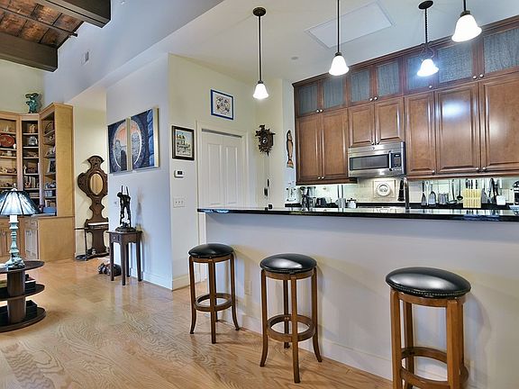 The half bath has a built-in storage closet, a deluxe closet system in the master bedroom and in the 2nd bedroom as well. Gives you plenty of places to store those items you only need occasionally. Wood flooring throughout, upgraded appliances. A walk-in laundry room, upgraded window blinds and plantation shutters. GE caf stainless appliances, & kitchen cabinets with pull-out drawers. Cabinets built to the ceiling, tile backsplash. Solar film on glass to prevent overheating. $35,000 in upgrd