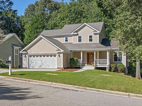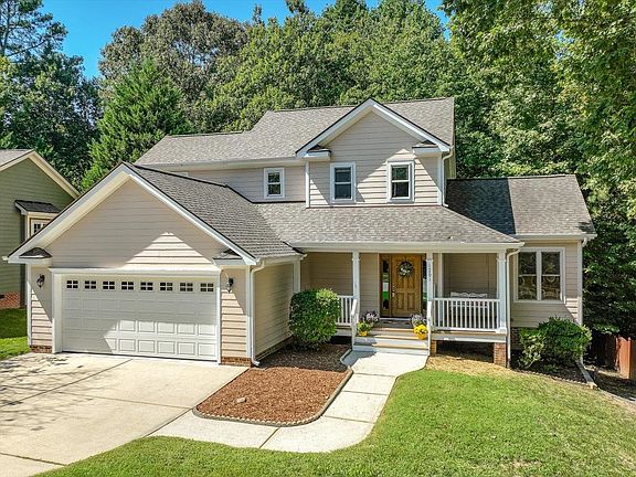 The Peak of Good Living at it's finest in desirable Whitehall Manor! This first floor primary nestled between beautiful hardwood trees will charm you with layout,  location & excellent condition. Sip some sweet tea on this welcoming front porch swing, relax in the sun kissed foyer & vaulted family room open to the kitchen with hardwood floors down. First floor primary tucked away for privacy with large WIC plus beautiful bath. Upstairs enjoy the loft/office, 2 large bedrooms & bonus/potential for 4th bdrm. Screen porch overlooks private wooded lot with great potential. Walk in crawl could have workshop. Minutes to n'hood pool, Downtown Apex, RDU, RTP, parks, excellent schools & more!