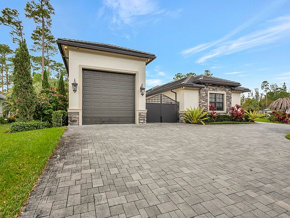 Beautiful custom home in the highly sought after boating and water skiing community of Banyan Lakes. Completed in 2019 by Heritage Builders and situated on 1 acre, this home features 5 bedrooms, 4.5 baths, a beautiful kitchen with wood cabinets, quartz counters, Thermador appliances, a walk in pantry and adjoining great room with a fabulous view of the pool and fenced in back yard. Interior features include tile throughout the main living areas, coffered ceilings,a spacious laundry room, security system with 9 ring cameras inside and out, Sonos entertainment system, and custom closet systems in each bedroom. Exterior features include a 3 car garage with EV charge port, epoxy floors and garage elevator lift for attic storage, separate 40' boat garage (currently used as an air-conditioned fitness center), house generator, impact windows and doors, 15x30 heated and screened in pool, outdoor kitchen with DCS grill, outdoor fireplace, landscape lighting, dog run and artificial turf in play area in backyard. Privacy galore on this beautifully landscaped lot.