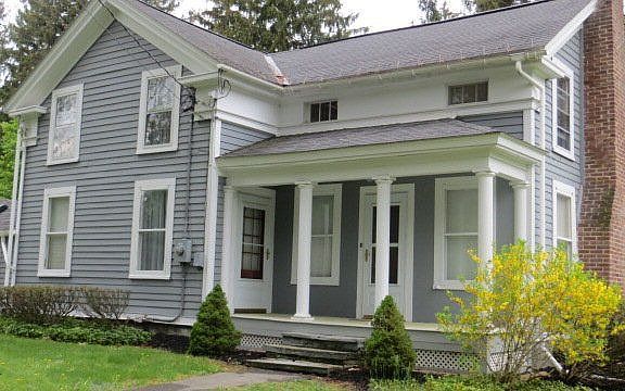 Lovely Greek Revival home in convenient location to CU, shopping, and schools. The home is in immaculate condition and has had many upgrades for modern living. A cozy sitting room features a wood stove and is convenient to the kitchen. The spectacular kitchen and dining area is open to the LR which features a gas fireplace. MBR and full bath on first floor. another full bath upstairs with two generous bedrooms also on the second floor. Large deck with privacy fence, 2 sheds, and a garage in rear. Nice level yard, good for playing and gardens.