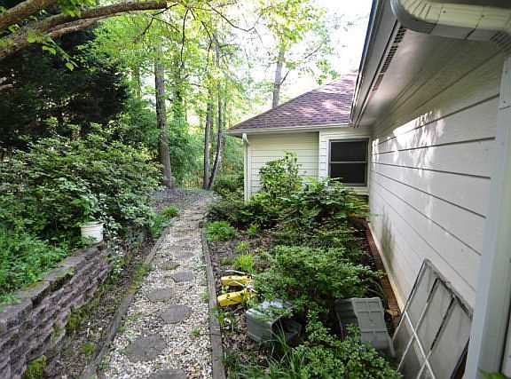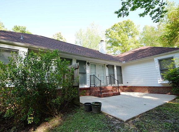 Own a CORNER of Cary Woods! The yard grand enough for playing ball, & a house, grand enough for entertaining in the open kitchen/breakfast, formal dining, sunken great room w/ woodburning fireplace as well as outside patio. 3 beds, full bath on 1 side. Master suite on the other, away from the kids, w/ 2 closets, jetted tub, sep shower, & dual vanities that sits quietly on the back side of house.