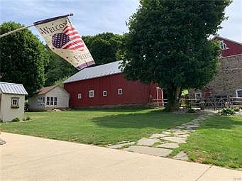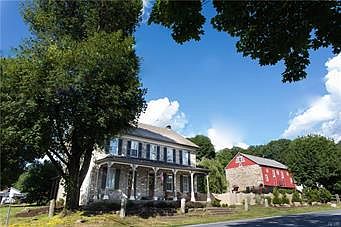 Beatuifully restored historic stone farmhouse. This property was the Huffs Church Hotel circa 1880's, and has been lovingly restored to its former grandeur. The red pine floors, the deep inset windows, and the beautiful woodwork make you feel the charm of that historic era from the time you walk in. The updated kitchen is stunning! Complete with plenty of cabinet space, a huge island, a farm sink, and an upgraded Aga gas cooking stove. The home boasts 6 nice sized bedrooms, and 2 1/2 baths. You'll love the convenience of the spacious 2nd floor laundry. The quaint summer kitchen has updated insulation, plumbing, windows, and electric as well as a half bath. An inlaw apartment in the rear of the bank barn with 2 bedrooms, 1 1/2 baths, an updated kitchen, pellet stove, private deck and washer and dryer, makes this a great potential bed and breakfast. There are 2 barns (one has 7 stalls), a smokehouse, a cottage, an inground pool, hot tub, a chicken coup, an outhouse and 4 acres.