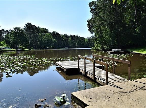Lake Front Property! Large Brick Home! Needs updating but offers abundance of opportunity. The main level has wood floors, 3 Bedrooms, 2 Full Baths, Living Room, View of Lake from Large Kitchen with a lot of cabinets and access to Oversized Garage. Basement Level offers Family Room has corner Stone Gas Log Fireplace and adjoining small bonus room, 2 Bedrooms and Full Bath, Large Laundry /Furnace Room with access to the outside onto a very spacious Concrete Patio. Detached Shed, Garden Spot. Owner currently has a Whole Home +Comfort Protection Plan warranty with Woodfin.