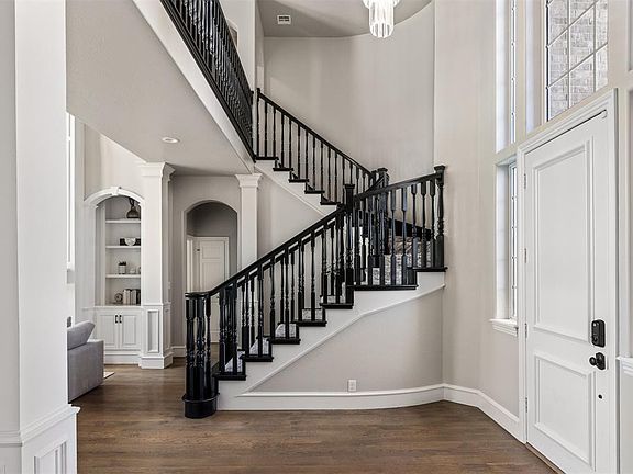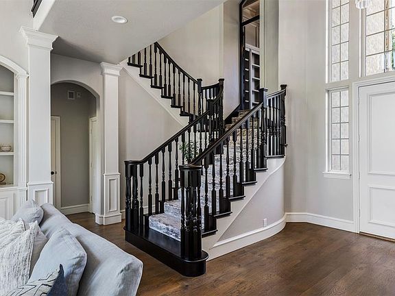 Introducing 1201 Irvine Drive, ideally positioned in the exclusive, guard-gated community of Oak Tree. Situated on an expansive lot offering panoramic views of the Oak Tree Golf Course, this meticulously crafted and beautifully designed home epitomizes modern elegance and sophisticated living. Compelling architectural elements, picturesque landscapes, and expansive lawns graciously extend an invitation into the residence. Remodeled by Tom French, this exceptional traditional boasts five well-appointed bedrooms, four full bathrooms, and one powder room. As you step inside the grand-scale foyer, a curved staircase complemented by soaring ceilings and a dramatic, bespoke light fixture evoke a feeling of innate grandeur. Effortlessly flow into the elegant formal living room, with floor-to-ceiling windows framing sweeping vistas of the lush golf course, bathing the space in natural light. A striking fireplace with stone surround anchors the room, enhanced by exquisite millwork and cabinetry, creating a refined ambiance. Entertain seamlessly throughout the charming family room replete with a wet bar, an elegant formal dining room, and a gourmet kitchen equipped with professional-grade appliances and quartz countertops, designed for luxurious living and refined culinary experiences. Indulge in the main level primary suite featuring designer lighting and a stunning bay window, alongside a spa-like bathroom and spacious closet, creating a tranquil retreat. Ascend upstairs to find a handsome study, a dedicated game room with an adjoining outdoor balcony, four guest bedrooms, and three full bathrooms. Enjoy summer evenings in the serene backyard featuring an expansive covered patio offering spectacular sight-lines of the golf course. Three-car garage with in-ground storm shelter. HVAC system replaced in 2021. A truly exceptional offering.