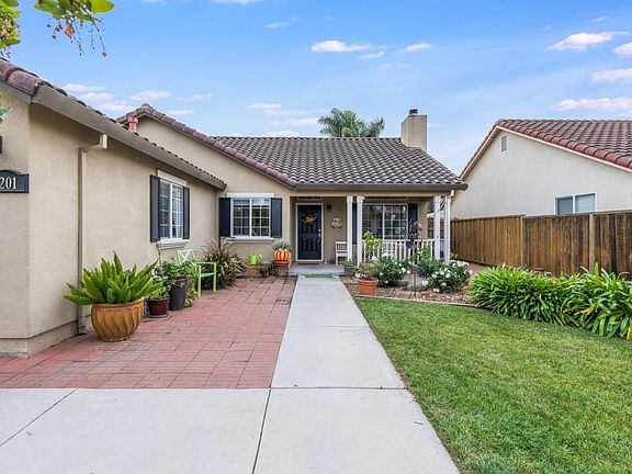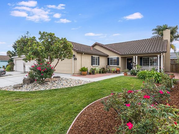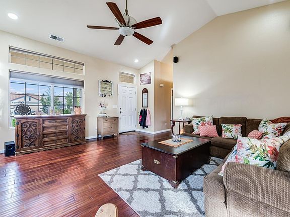 Welcome home to this beautiful single story home! You will love this open floorplan! Scraped Harwood flooring throughout with vaulted ceilings. Four bedrooms and three baths is perfect for a large family or anyone in need of an home office option. This kitchen boasts white cabinetry, stainless steel appliances, quartz countertops. The spacious primary suite features, dual sinks, large tub, walk-in closet and access to the rear yard through the sliding glass door. The rear yard is an entertainers dream. Pool/spa and outdoor bar-b-que area. Pergola and mature palm trees create an oasis feel. A detached studio is perfect for a home office, she shed or man cave. Additional perks for this gem are energy saving solar panels, nest thermostat and air conditioning! This is a really special home!