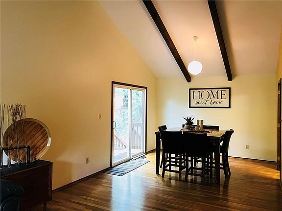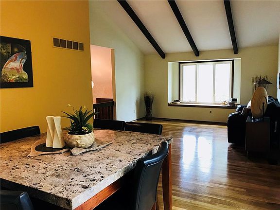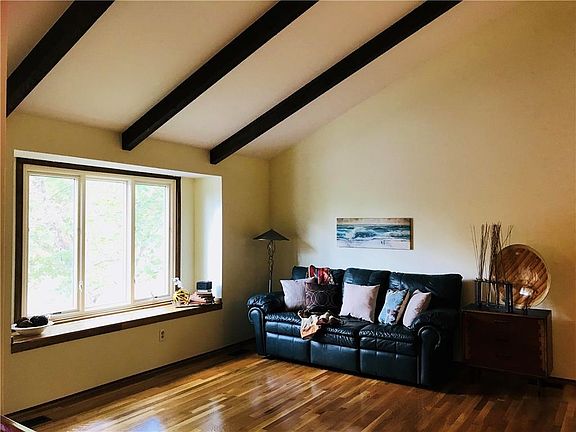 Orchards contemporary raised ranch home with 4 bedrooms and 2 1/2 baths. Spacious vaulted living and dining room features wooden beams and hardwood floors. Large main level master suite overlooks private wooded yard with deck and patio. Daylight basement has family room with fireplace, 4th bedroom with 1/2 bath, laundry, and cedar closet. Brand new driveway and roof is 3 yrs new! Close to the KU campus for quick and easy access to the heart of Lawrence. Quick close/possession possible!
