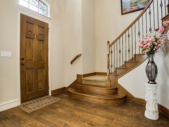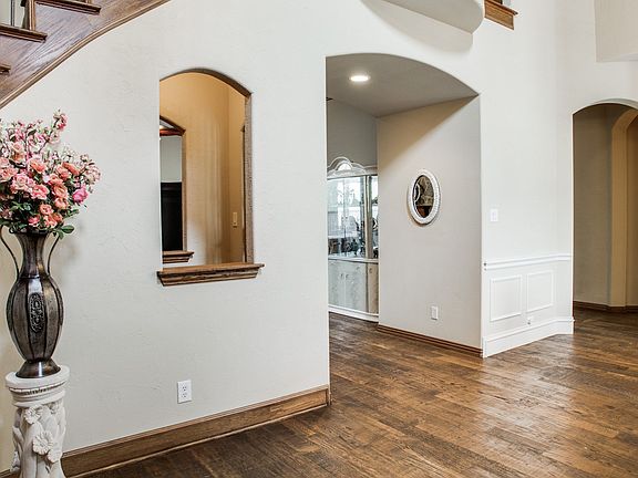 Beautiful Drees custom home in great neighborhood in North Garland on large corner lot. Master and 1 bedroom down with 2 full baths. Built-in custom cabinets in family room, wine bar, wet bar and breakfast. Hand scraped hardwoods in entry, Family, Dining, Kitchen and Breakfast area. Large Master Bedroom has bay windows that lead to stunning Master Bath with oversized vanities, granite countertops, incuding: make-up center ,seperate shower and jetted tub. Soaring double crowned ceiling in kitchen, family room, study and Master Bedroom.