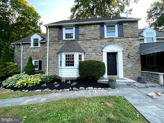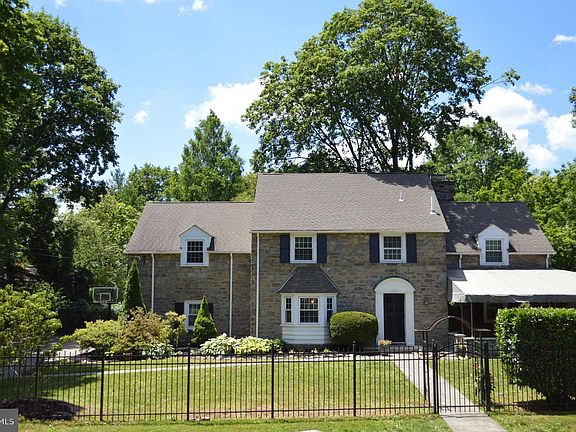 Welcome to this Freshly Painted 1930's stone colonial offering 5 bedrooms,3.5 baths and 2 car attached garage. This home sits on a flat fenced corner lot in the desirable Wynnewood Estates neighborhood and coveted Lower Merion School District. Walking distance to Wynnewood train station, South Ardmore Park, many restaurants, shops, and minutes to Center City. The front flagstone patio with three sided sitting wall and season canopy is perfect for entertaining. The rear patio boast sitting areas, snack bar seating for six, wooden arbors and a stone fireplace. Spacious rooms and updated baths welcome you inside and an easy flow throughout the house are perfect for entertaining. First floor has entry foyer with coat closet and adjoining half bath. In the kitchen, stainless appliances and granite counters are perfect for the home cook and host/hostess. Counter seating is perfect for easy family breakfast, afternoon snacks and keeping-the-cook-company.A spacious living room with wood burning fireplace and French doors lead to the year round sunroom, with access to both patios. On the second floor is a large master bedroom with a lovely tiled bath as well as three additional, spacious bedrooms and updated full bath. The third floor en suite well-suits visiting family, a live- in au pair, or a quiet at-home office. The partially finished dry basement currently has four built in desk and bookshelf units-virtual school,anyone? It also can be readily used for teen gaming and/or family entertainment.An adjoining laundry and ample storage fill out the unfinished area.The yard is fully fenced, with lots of grassy space for play. And for your fitness needs-an American Ninja Warrior course(naturally discreet in the side yard). Imagine this home with neutral(or otherwise, your own)paint scheme. Easy adjustments to make this your forever home!