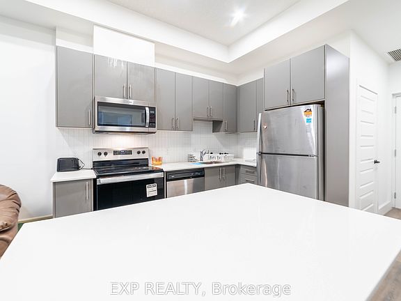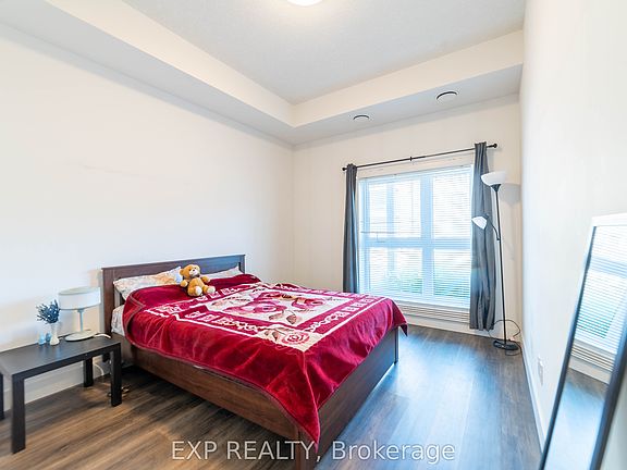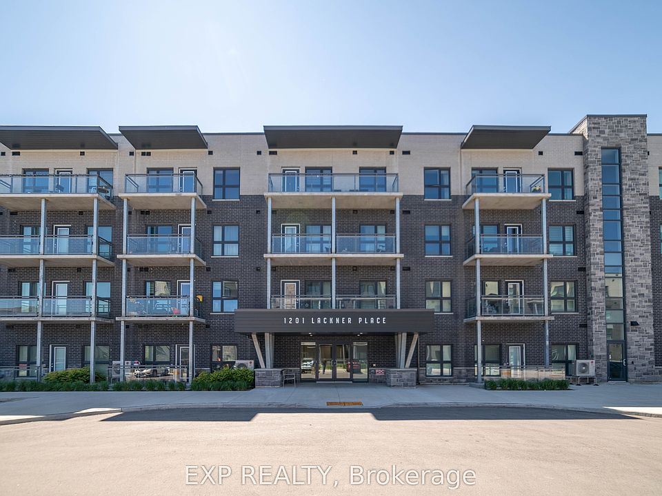 Step into this beautifully designed ground floor 1-bedroom, 1-bathroom condo that blends modern upgrades with thoughtful accessibility. Featuring a spacious open-concept layout, luxury vinyl plank flooring, and a contemporary kitchen complete with quartz countertops, stylish backsplash, and premium stainless steel appliances. The generously sized bedroom is filled with natural light and elevated by a coffered ceiling and a walk-in closet. Relax and take in tranquil views of Natchez Woods from the oversized windows and large private balcony your personal retreat in the city. This accessible unit is tailored for comfort and ease, offering a large bathroom with quartz finishes and wheelchair-friendly design elements, including optimally positioned light switches and outlets. Enjoy the convenience of ensuite laundry with full-size front-loading machines. Residents benefit from excellent amenities: a fitness center, party room, bike storage, and ample visitor parking. With 1 dedicated parking spot and a storage locker, every detail is covered. Ideally located just 10 minutes from Highway 401 and within walking distance to scenic trails, playgrounds, and community parks. Minutes from shopping, dining, and everyday conveniences this is where lifestyle and location meet seamlessly.