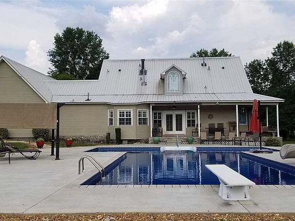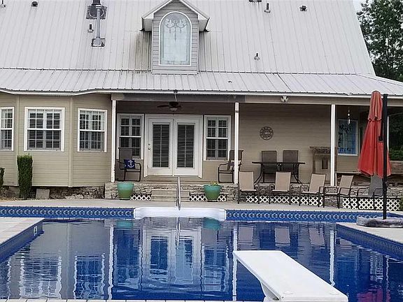 4 br, 3.5 ba home on 24.5 fenced acres. Master has walk-in closet, 4'x4' shower w/ dual showerheads and rain shower. Upstairs bedrooms have their own full bath and are separated by a loft/TV area. Spacious living room overlooks pool and fireplace with Buck Stove insert. Eat-in kitchen overlooks the pool, lots of cabinets and is adjacent to the large dining room with built-in window seat. Oversized laundry/utility room includes pantry. Beautiful hardwoods and stained glass throughout the house as well as plantation shutters. Lots of closet space. Attached 3 car garage with floored, walk-up attic space. Wrap around porches with built-In benches and picnic tables. 60,000 gal saltwater pool is 9 ft deep and has diving board, slide and entertainment patio. 5 stall horse barn with tack room and hay loft. Property is fenced for livestock with two ponds -lg pond has pier and is stocked with catfish, bass, and bream. Lots of wildlife. Detached workshop. Included is a Kubota tractor w/implements
