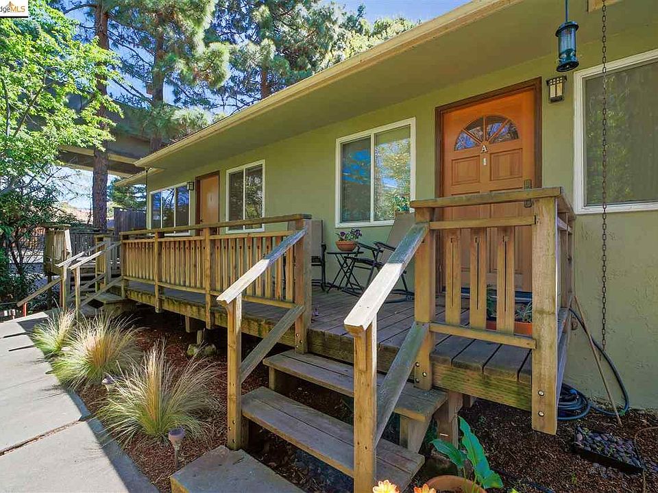 Nestled in a woodsy setting next to Codornices Creek and the Ohlone Greenway, this charming mid-century duplex offers an excellent investment opportunity just steps from Gilman Street and the many pleasures of its Westbrae neighborhood. The side-by-side, mirror-image two bedroom units feature airy, open floor plans with large, sky-lighted living rooms, generous bedrooms, and convenient central kitchens open to the dining areas. A rear common deck leads to a shared storage shed. The basement provides more storage space and the shared laundry. Happy tenants can leave their cars on the driveway and bike or stroll the Greenway to El Cerrito or North Berkeley BART. Tenant-occupied; good rents.