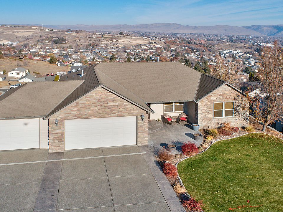 Situated atop Selah's coveted Heritage Hills neighborhood, this spectacular five bedroom home was designed to capture year-round sunrises, summer sunsets and breathtaking views across the entire Selah valley throughout both levels of the home. Inside, you'll enjoy a desirable layout highlighted by the spacious great room with vaulted ceilings, a cozy fireplace, and a semi-open kitchen featuring hardwood floors, granite countertops with bar style seating, and newer appliances. The main level features 3 bedrooms and 2 bathrooms including the master suite with a walk-in closet and separate double sinks and access to the expansive back deck. The lower level features 2 bedrooms, 1 full bathroom, laundry room, and a spacious rec room with a wet bar and patio access. Outside you'll find...