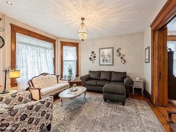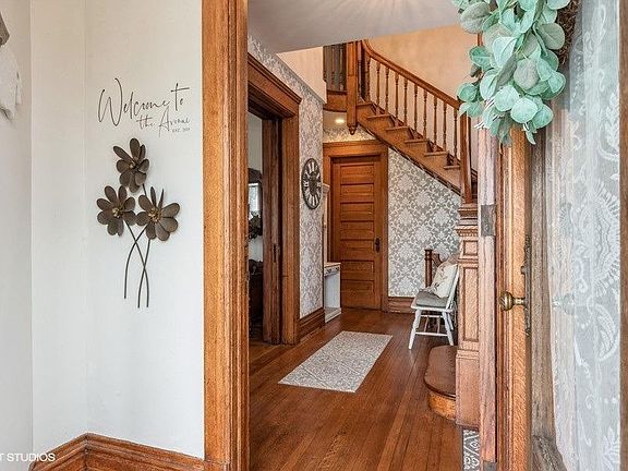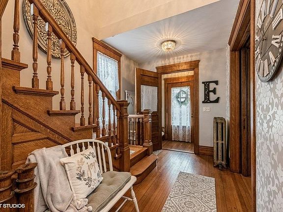 HISTORY AND BEAUTY are wrapped perfectly together in this delightful home on one of the avenues in downtown LaPorte. Original woodwork, pocket doors, and vintage tile fireplace surround speak to the history of this home. While re-finished hardwood floors, fresh paint inside and out, and all new lighting enhance the beauty. This home greets you with its large, covered front porch and welcoming foyer. There are four bedrooms, one full bath, one three-quarter bath, and one half bath, a formal dining room, and newer kitchen. The basement is dry and offers abundant storage space. Some work has been done to convert the attic into additional living space (including plumbing for another bathroom), but that work has not yet been completed. The boiler is NEW and there are portable A/C and window A/C units for climate control. Home sits on a corner lot, has a nice shed and fenced yard. This home has been a successful short-term rental for the current owners.