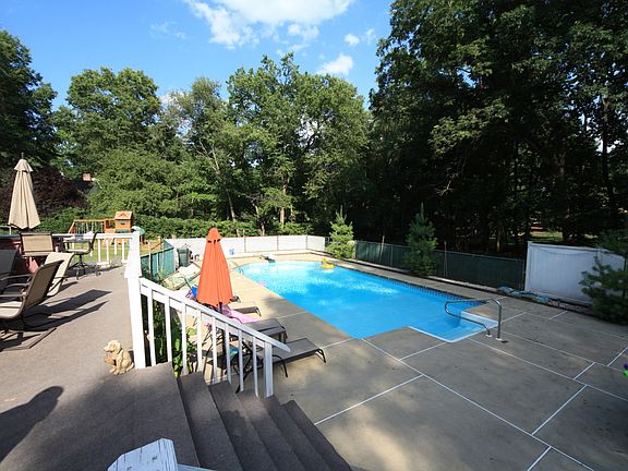 Stunning 4 bedroom home set back on 1 acre maturely landscaped yard with circular drive. Updated kitchen with custom maple cabinets, all new stainless steel appliances, custom inlaid tile floor, built in pantry. The kitchen is open to your family room with full brick wood burning fireplace and sliders to yard. The roof, siding and windows were replaced in 2006. The hardwood floors throughout the home were redone and like new. Fourth bedroom has access to a 20x16 unfinished room, perfect for another bedroom, recreation or movie room. Enjoy an in ground pool with cement patio and walk around privacy fencing. Large rear deck off family room. The home is literally in move in condition. Basement waterproofed with transferable warranty. City sewers scheduled to be installed.