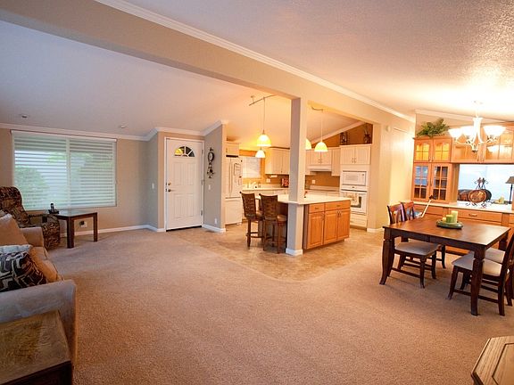 This is not your typical manufactured home! Remodeled from top to bottom. This will fit the taste of the most discriminating buyer. All walls are sheetrocked, textured, and painted, with crown moulding throughout. No paneling. Beautifully remodeled kitchen and baths, Upgraded flooring throughout. Prime location in the community.