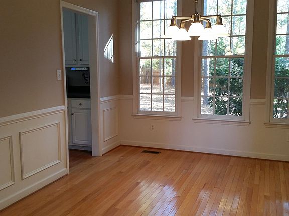 Spacious 4 bed, 2.5 Bath house in Beckett Crossing - excellent Apex location! On a large wooded lot! Open floor plan, Master suite down stairs. Large bonus upstairs. Hardwood/LVP in most of the areas. Features a patio and a deck for enjoyment on warm days. Fenced backyard. Pool community. Owner pays HOA. Pets negotiable. Great Location, Excellent schools. Easy access to Hwy 64, I-540 and US 1. Minutes from shopping centers,restaurants! Tenants respossible for utilities and lawn maintenance. Owner pays Hoa. No smoking. House trained pets allowed (Upto 2). Pet fee applicable.