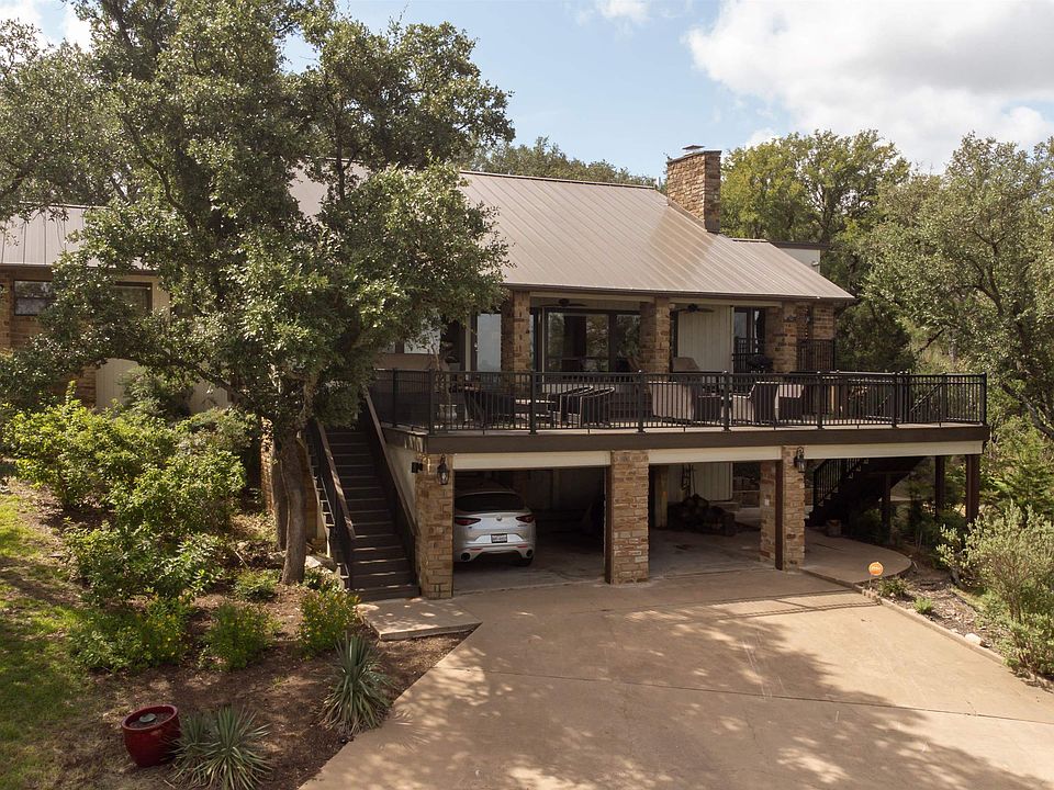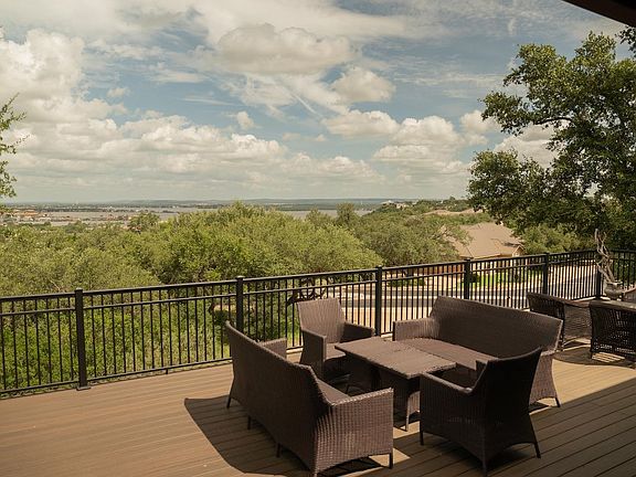 This home is truly one-of-a-kind with incredible Lake LBJ and Texas Hill Country Views, set atop a combined ~1 acre. Ideal hill country location. This listing includes the 2435 square foot home on .61 acre, and an adjacent lot of .43 acre, for a total of 1.04 acres. Whether you're entertaining on the large, beautiful deck or enjoying a private sunset, this property will delight. The home is just over 2,400 Sq. Ft. with 3 Bed / 3.5 Bathrooms, with two full bathrooms in the primary suite. There is ample storage with built-ins and throughout the home. Recent improvements include: new roof (~2 years), new exterior paint, new exterior deck with durable TREK deck, expansive drainage system on property, home was re-leveled, new HVAC system, three large external AC units, new gutters, new fans, new canister lights, reverse-osmosis water purification system, dehumidifier system in crawlspace, new electrical panels. Security System purchased and paid in full, stays with the home.