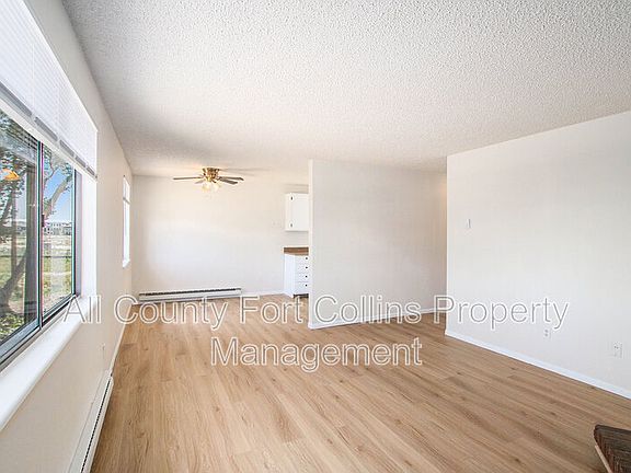 AVALIABLE 6/23. Nice and bright upstairs apartment in a fourplex. Renovated with new paint and new laminate floors. Spacious 2 bedrooms 1 bathroom unit. Open concept living and dining area with fireplace. Lots of windows and light. Good-sized bedrooms with large windows and closets. Ceiling fans in each bedroom. Baseboard heating/ No A/C. Shared laundry room downstairs, and individual storage units. One parking space in parking lot, and more on street parking. Big, open grassy area in the back. Owner pays for trash, sewer and water. Tenet is responsible for electricity, gas, and internet. Located on the north side of town, easy access to King Sooper shopping center, and lots of restaurants nearby. Close to Poudre river trail, and lots of bike and walking paths. NO SMOKERS. Sorry, No Pets. All lease applicants will submit a supplementary pet application through Pet Screening that will indicate one of the following: 1) that you have an ESA; or 2) verify that you have neither pets nor an ESA. This Pet Screening application must be completed and an associated fee paid prior to our consideration of your application (there is no associated fee for no pets/ESA).