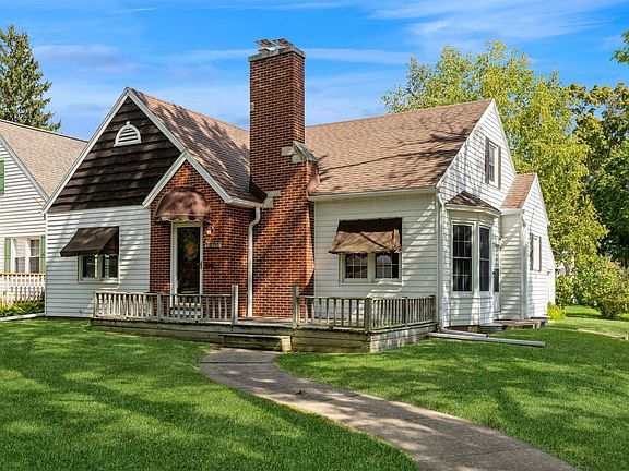 Step inside and feel the pride of ownership. This home has such beautiful woodwork and doors, crown molding throughout. The living room has great space with a fireplace with gas logs open to the dining room with 2 built-in hutches with a beautiful door leading to a breeze way that attaches to the one car garage. There is a white kitchen with plenty of countertops and cabinets. There are two bedrooms and an updated bathroom. There is a full basement with a work space and laundry in the basement. There is a walk up attic with lots of options you can use it for. Bathroom has a laundry shoot Roof 2021, windows and water heater 2022 per seller. This is a must see with a great location. Buyer and Buyer's agent to verify all sq. ft. figures, school zones, taxes, exemptions and zoning.