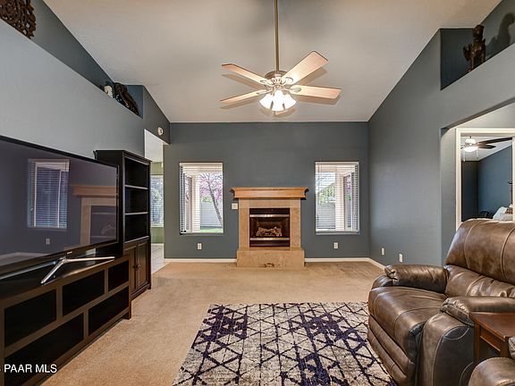 This impeccably maintained Prescott Country Club single level condominium includes thou$and$ in upgrades and updates! It is perfect in every way! Updated 2 bedroom with designer ceiling fans and 2 full baths. The 2-unit condo is tucked at the back of Prescott Country Club offering privacy and views! Great room concept with two-tone paint, gas fireplace, mantle, & vaulted ceilings giving a feeling of spaciousness while the kitchen includes 2019 Samsung Stainless Steel Appliances and Natural Oak Cabinets, and the dining area opens to the private back yard and covered patio! The master bedroom and spa-like bathroom with executive-height vanity and walk-in closet also has access to the patio - It will knock your socks off!
