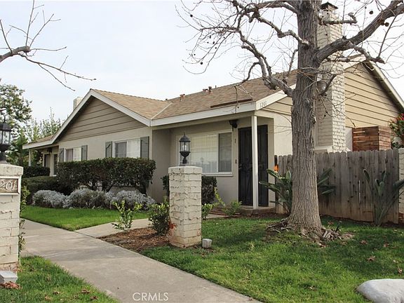 RARE single level 2 bedroom, 2 full bath condo with designer upgrades and touches throughout! Luxury vinyl flooring, light & bright interior paint with recessed lighting on dimmer switches. Cozy fireplace in spacious living room. Spacious master bedroom with private bathroom and custom woven shades. Secondary bedroom has large closet. Kitchen has separate dining area and a charming breakfast bar for guests! Detached (shared) garage. Newer A/C unit. Only one shared common wall. Convenient to shopping, freeways and restaurants. Community fenced pool with greenbelt areas. This home has been excellently maintained and comes with hard-to-find interior laundry hook-ups. This desired END-UNIT feels extremely private and boasts a large "actual" backyard that has been custom designed! With drought tolerant plants, shrubs, stone pavers w/artificial grass, covered patio area & convenient access to garage, this home Truly feels like a Single Story Home in the Heart of Orange!