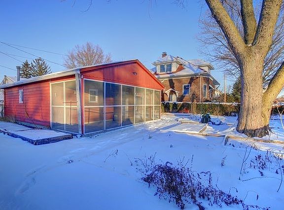 Turn back the hands of time in this 1918 brick bungalow. This vintage home sits on a corner lot and features original wood floors, beautiful trim and built-in cabinets with beveled glass doors. In the roomy, loft bedroom on the upper floor you will find an attached 2nd bath and walk-in storage closet. The detached outbuilding is large and doors could be modified to allow vehicle access. Attached to the outbuilding is a screened porch where you can relax in the summer months. Complete roof tear off and vinyl siding on the dormer windows in 2015. Let the charm of this home guide you in making it your own.