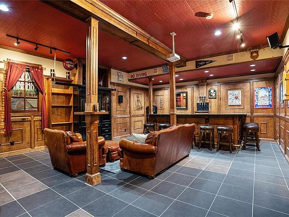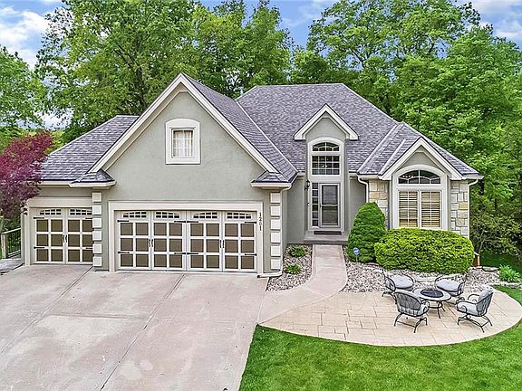 New price and new carpet! Entertainers dream. Not for the boring. "Basement finish just about the coolest I have ever seen... clients loved it" - per last feedback. New roof, composite decks, updated master bath, tankless water heater, sprinkler system, tons of storage and an authentic British Pub. Cul-de-sac lot, backs to trees and huge private backyard. Top rated school district, near highway access, short drive to airport, most amenities 5-10 minutes and most of KC in 25+/- minutes. Bring your fun buyers!