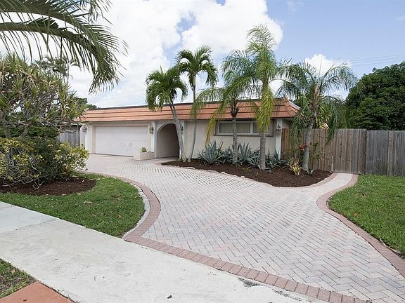 Very Spacious, open floor plan, with lots of natural lighting & vaulted ceiling in this highly sought after East Boca neighborhood. Corner lot, 2 car garage, private fenced yard & circular driveway with brick pavers going around most of the home. 3 Bedrooms, 2 Baths, 2,175 sq ft under central air & another 528 sq ft garage with a very cold 30amp wall AC unit. Giving a total of 2,703 sq ft of cool usable space all under a NEW ROOF put on in