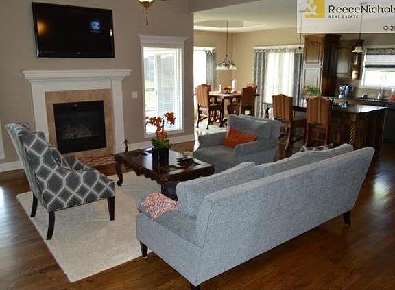 Almost new! The Vasut, Stanton reverse floor plan offers, 3200 Square feet, 4 bedrooms & 3 full baths, granite counters, hardwood floors, pantry, island, stainless steel appliances. Window treatments are done! Master suite walks out to a covered deck, with views of the pond & fountain. Open & inviting living room with fireplace. Walkout lower level, has a wetbar, 2 bedrooms, full bath a media area & a great room. Private, newly treed backyard. 3 car garage. Enjoy the community pool, play area & walking trails.