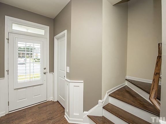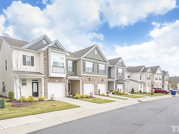 Gorgeous Carlton End Unit, with beautiful private backyard protected tree line view. Upgrades galore: LVP for entire first floor, hardwood stairs, granite Kitchen counter tops and granite vanities in master bath, guest bath, and laundry room. Large Ceramic Tile shower in Master bath. Custom shutters, Gas fireplace, gas range,and Custom Shelving in Master Bedroom walk in closet Home shows like a model. Easy access to shopping, Airport, RTP, and all areas of the Triangle.