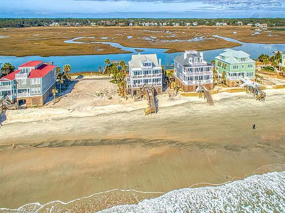 An exclusive oceanfront opportunity with a private dock on the salt marsh. Luxurious appointments and thorough attention to details. This home exudes style and comfort from every room. Expansive porches on the ocean and creek sides. Miele appliances, Sonos sound system, heated bathroom floors, gas fireplace with fossil stone surround, hand-selected granite, and custom Vent-A-Hood for cooking inside and out are just some of the custom details that fill this home. A complete remodel from the outside walls in includes new electrical and plumbing systems, spray foam insulation, new HVAC systems, new Anderson windows and doors with impact resistance and high-velocity glass, new concrete fiber siding, new standing seam metal roof, Ipe decking and more. This stunning home offers a relaxed coastal aura with sprawling views, luxurious comfort, and Lowcountry style.