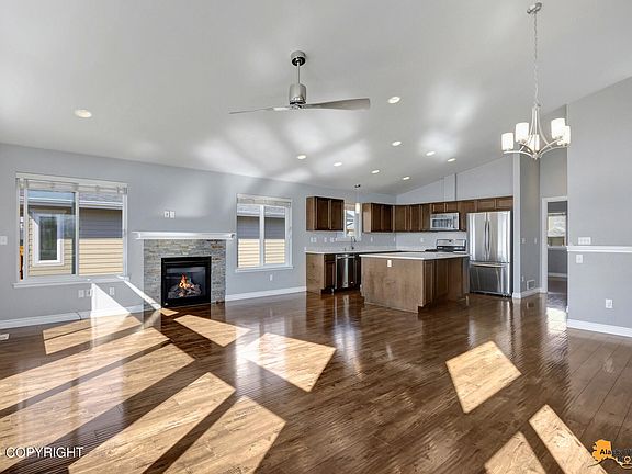 Stone's throw to downtown but nestled just outside the hustle and bustle in the picturesque and sought after Northpointe Bluff neighborhood! Sun pours through the front wall of windows all year long plus gorgeous views of Chugach Range and downtown! Vaulted ceiling and cozy gas fireplace. Open kitchen with quartz counters and stainless steel appliances. Large master suite with huge walk in closetMain floor features two additional bedrooms and walk-out to the backyard. Two raised garden beds and room for lots more! Front deck great for BBQing and enjoying all day sunshine. Close to parks and wooded walking trails!