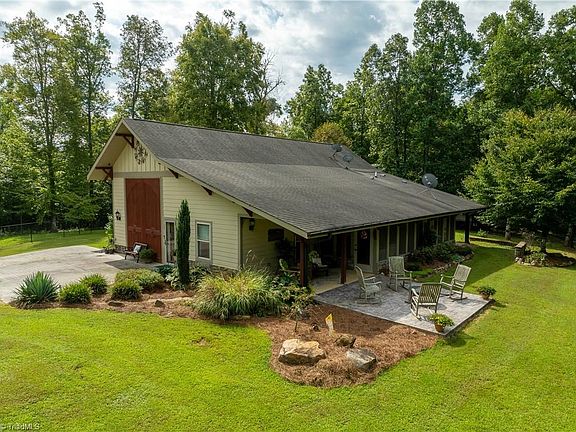Your private 40-acre outdoor paradise awaits! This unique property, bordered by the Little Yadkin River, is a dream come true for outdoor enthusiasts, offering fishing & hunting opportunities. The modern 2-bed, 2-bath barndominium features a flexible layout with a bonus room, office, and dining room. Enjoy the seasons from the fully screened-in porch or patio (fire pit to stay). The property is equipped with a large detached workshop, storage buildings, and, of course, a chicken coop. Key updates include a whole-home Generac generator, water filtration system, and an updated heat pump for efficiency. The house also has radiant floor heating. Multiple walking trails lead to the river, and several prime building sites offer potential for expansion. A truly one-of-a-kind retreat that combines modern living with unmatched natural recreation. The property will be combining two lots to equal 40 acres. The tax amount shown is for 1 lot. Discounted agricultural rate.
