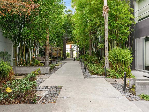 Welcome to the award winning Pacific Cannery Lofts, a true urban oasis in West Oakland with lush courtyards and walkways. This chic and spacious 1 bedroom, 2 bath loft-style unit is a blend of industrial design infused with modern amenities. Exposed concrete pillars, soaring high ceilings, and walls of windows that drench the unit in natural light. The open floor plan creates ease in entertaining, while still having ample space for privacy. Beautifully updated kitchen and bath with recently installed laminate flooring provide clean and modernized rooms. The patio allows for your own garden oasis and is perfect for your morning coffee. This wonderful gated community offers conveniences seldom found in most complexes, such as a bike storage & lounge, a dog bath station, and electric car chargers for every parking space. Ideally located, PCL is minutes to West Oakland BART, Jack London Square, & easy access to San Francisco.