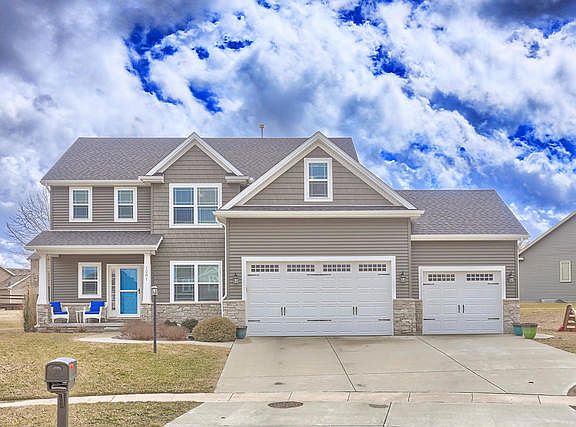 Quality construction built in 2013 by Armstrong Builders. This bright and beautiful 2 story home offers five bedrooms, three and a half baths, and an open floor plan with approx. 3300 total finished sq.ft. Eat-in kitchen with hardwood floors, island with seating, walk-in pantry, stunning white cabinetry, and stainless steel appliances. The first-floor flex room with hardwood floors is the perfect office/den space. Enjoy the views from the sunroom of the oversized backyard. The second-floor master suite features a cathedral ceiling, huge walk-in closet and master bath with dual vanities, tub and separate shower. Three additional bedrooms and laundry room complete the upper level. The basement offers a spacious family room with fireplace, full bath, 5th bedroom w/ walk-in closet and storage space. Drop zone with lockers off of the 3 car attached garage. A must see home, call today to schedule your private showing!
