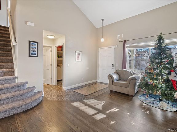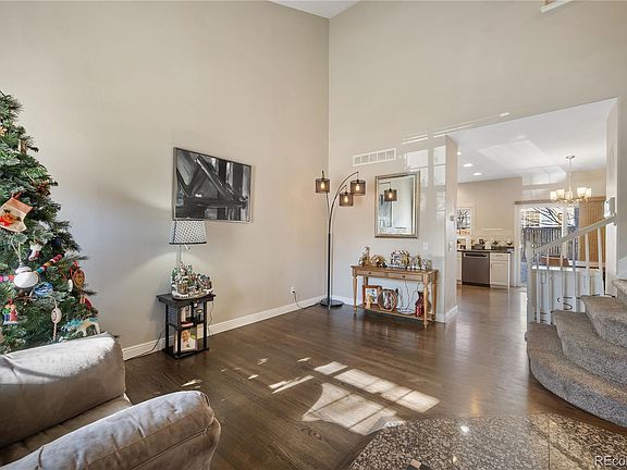 You won't want to miss this move-in ready, two-story home in the highly desirable Westridge subdivision of the greater Highlands Ranch community. As you enter, hardwood floors greet your feet and flow into the living room and kitchen, while vaulted ceilings make for a grand first impression. The kitchen boasts 42" white cabinetry, granite countertops, tile backsplash, recessed lighting, 9-foot ceilings, stainless steel appliances, including a new brand new refrigerator, an eat-in area. The kitchen also has access to the stamped concrete patio in the backyard for convenient outdoor dining. A bedroom, powder bathroom, and laundry/mud room with brand new washer and dryer complete the main level. The upper level holds four of the six bedrooms, including the primary suite, with dual walk-in closets and ensuite 5-piece bathroom, complete with soaking tub, shower stall, and dual sinks. Bathroom finishes include wood-look tile floors, granite countertops, and wood-look tile accent wall and tub/shower surround. All bedrooms feature carpeted floors and ceiling fans. The upper level is completed by a full bathroom with wood-look tile floors, shower/tub combo with tile surround, granite countertops, and undermount sinks. The partial basement has been fully finished by the sellers, and includes a sixth bedroom with built-in shelving & closet, and an egress window, as well as an exercise/recreation room. Both rooms have wood-look laminate flooring and recessed lighting. The basement also holds the HVAC closet with furnace humidifier and crawl space access with vapor barrier and lighting for extra storage. The fenced backyard features raised beds with stone wall, grassy area, and side gate for access to the front yard. The Highlands Ranch community offers four state-of-the-art recreation centers, while the Westridge subdivision has batting cages. Tennis courts, a climbing wall, and channel pool are also available in nearby subdivisions of Highlands Ranch. Welcome Home!