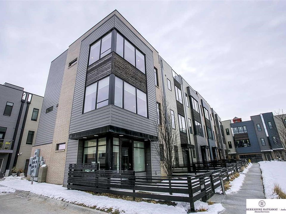 Contract Pending - Unique urban living!! Very modern design. Location! Just south of Old Market, Blue Barn & restaurants. The 3-floor design has 2 beds & 3 baths with a built-in 2-car garage allowing you private parking & entrance to your home. Rowhouse sits at North end of subdivision allowing you wide views of downtown Omaha & surrounding areas from private rooftop deck!