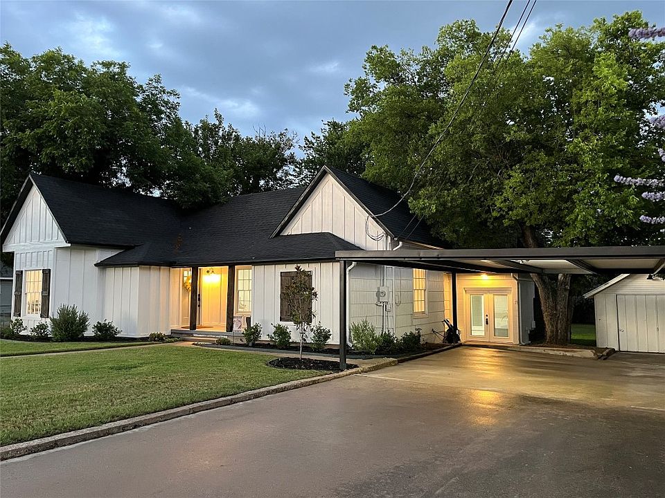 Luxury Farmhouse Retreat. Located just outside the DFW metroplex, this magnificent modern farmhouse boasts 3 bedrooms - all with ensuite baths and an expansive 2400 SF of living & detached office space, providing an idyllic retreat. Professionally remodeled with an array of upgrades, this home is a true masterpiece. No detail has been overlooked, ensuring that you can move in and start enjoying a luxurious lifestyle immediately. Outside, the large back yard awaits, providing endless possibilities for outdoor activities and entertaining. Whether you envision a serene garden oasis or a lively space for gatherings, this yard offers the canvas for your imagination to flourish. Mature shade trees dot the landscape; you'll revel in the natural beauty and tranquility of your surroundings. Perfectly situated close to outdoor recreational areas, you'll have EZ access to nature's playground. With proximity to dining and shops, you'll relish the convenience of a vibrant community.