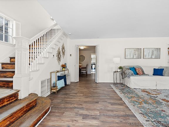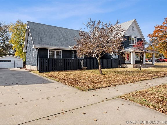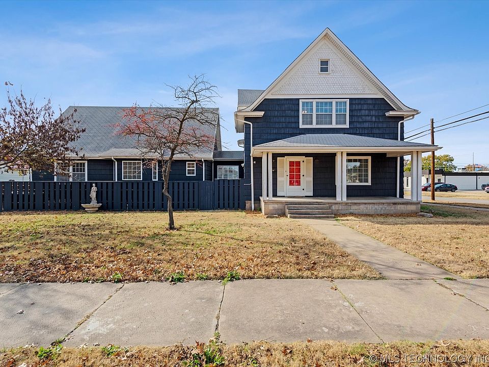 Resting with poise at the corner of 12th and Keeler this Downtown Bartlesville dame is full of love. She has played host to families large and small, both young and old. Many have found solace under her shelter. Her 2004 addition with ramp access adds to the unique floor-plan that is perfect for entertaining, multi-generational living, or possibly short term rental space. Whether choosing to waive at neighbors and passer-byes or seeking peace and solitude, her expansive porches and large yard offer the perfect landing place. Her many oversized closets, 20x40 garage and 2nd 12x18 garage offer storage and hobby space for all. With approximately 3000 sqft and dressed in her best navy blue gown this lady is the hostess with the mostess.