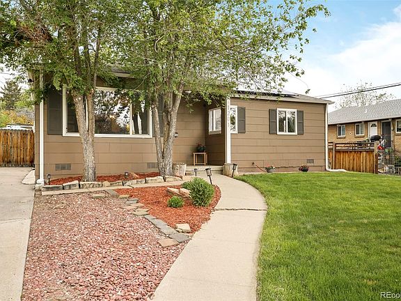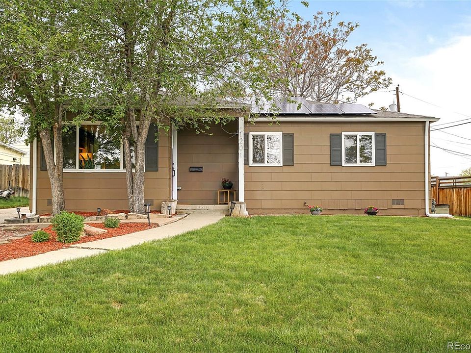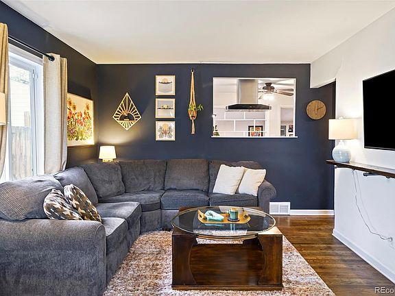 Updated finishes inspire a warm and modern atmosphere in this inviting Ruby Hill home. Beautiful hardwood flooring flows underfoot complemented by designer paint colors throughout. Enjoy relaxing with guests in a bright living room. The updated kitchen beams with light quartz countertops complemented by rich, dark-stained cabinetry and newer stainless steel appliances. Located off the kitchen, a large, finished bonus room with outdoor connectivity offers space for a rec room or a home office. Three sizable bedrooms share an updated bathroom with modern finishes. Escape outdoors to a large backyard featuring a patio, storage shed and plenty of space for a garden. A convenient laundry area offers an included newer washer + dryer set. Leased solar panels promote energy efficiency and sustainability. Upgrades include new water heater in 2024 plus newer furnace and central A/C in 2022 ensuring year-round comfort. Conveniently situated just moments from Levitt Pavilion, opportunities for entertainment and leisure are endless.