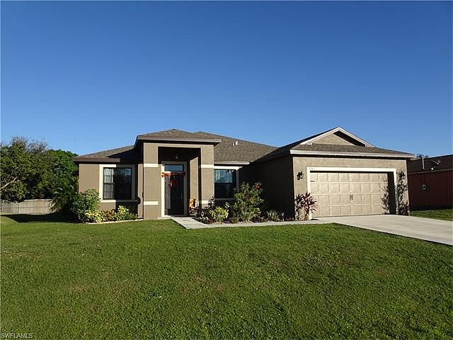 One year old Marathon floor plan on City Water and sewer in SW Cape Coral, close to the Pine Island Road corridor. This spacious one-story home features 5 bedrooms, 3 baths, and is 2,180 square feet with a 2 car garage. Included in this beautiful are new energy efficient appliances, custom cabinets, covered patio. This home is better then new with upgraded lighting and ceiling fans.