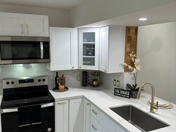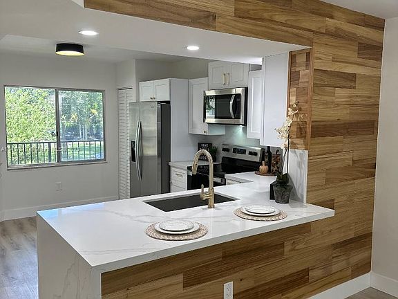 Totally remodeled condo, everything in this apt is brand new, the Ac, tankless water heater, stainless steel appliances, select quartz and shaker style completely wood cabinets in kitchen and bathrooms, one of the only kitchens that doesn’t have a wall between the kitchen and the dining room area, back lit mirrors in bathrooms with exhaust fans that have led lighting and blue tooth speakers in them, flooring, lighting, fan lighting in every room, baseboards, the popcorn ceiling was removed and has a smooth skim coat, new screens on the patio, new bifold doors. This apt is on the lake in the newer side of Century Village a 55 and older community with all the amenities as a resort, there is a free standing gym on this side of the community a 20 million dollar club house with indoor pool,gym