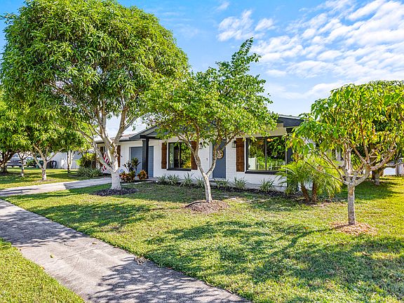 Amenities included: central air, dishwasher, stainless steel appliances, quartz counters, updated bathrooms, storage area, washer dryer, solar panels (low electric bills!), hurricane impact windows, built in bar with wine fridge. Bonus 300 SF unconditioned area for storage/ gym/ workshop. Mango, avocado, star fruit and guava trees on property.