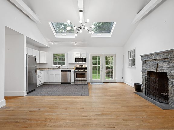 A must-see in person to understand the beauty of this house. 4 Bed/2bath on shy half acre. Nicely landscaped and private lot just a short distance to the beach. Open living, kitchen, dining area with cathedral ceiling and skylights, a stone fireplace and double French doors leading out to a bluestone patio. Separate garage with full basement!, and storage shed and plenty of room for a pool. Fully finished light-filled basement with 9.5ft ceiling, 8 large egress windows, another stone fireplace and double 7ft French doors leading to an exterior stairway. A lot of house with a total of 1877 sq ft and lots more potential. Excellent investment to live in, expand or keep as a rental property. $1,350,000. Call broker/owner at 516.982.1311