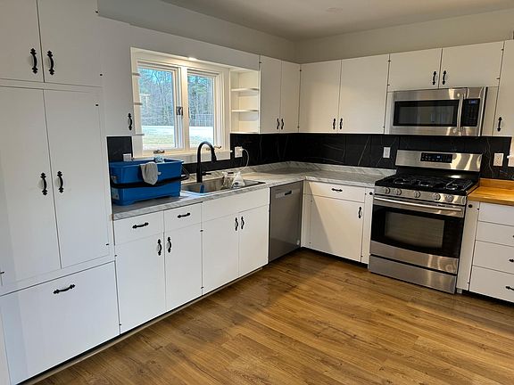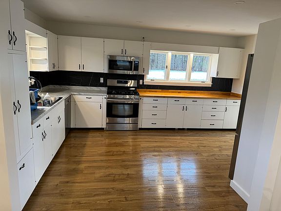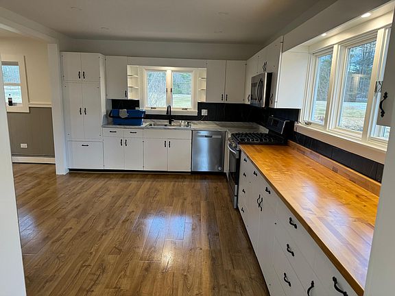 Fully renovated, single-level home with 3 bedrooms and 1 large bathroom. All new hard floors throughout (no carpets), new appliances, bathroom, heating, lighting, etc. House includes kitchen, dining room, living room, den/play area, 3 bedrooms, bathroom, entryway, and detached 2 car garage with additional storage space. Lot size is over 1 acre and is walking distance to town and is beside a community park/field for gatherings and pick-up games. Close proximity to DHMC and Dartmouth College, as well as West Lebanon where there are restaurants and shopping. No smoking on property. Pets' negotiable. Renter is responsible for all utilities, but lawn mowing and snow plowing is included. House is internet and cable ready. Smoking on site is not allowed. Pets can be negotiated if well behaved. Due at lease signing is security deposit last month's rent. Lease duration can be discussed. Not furnished.