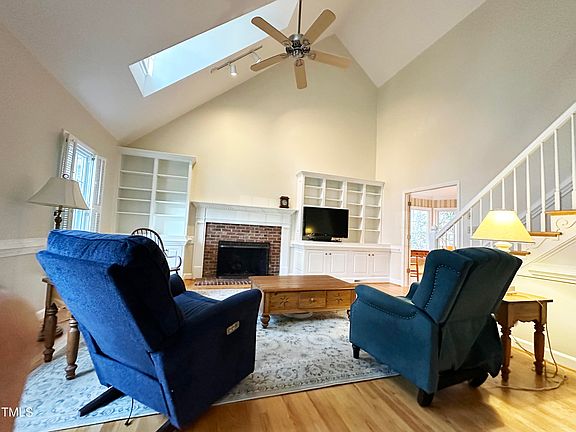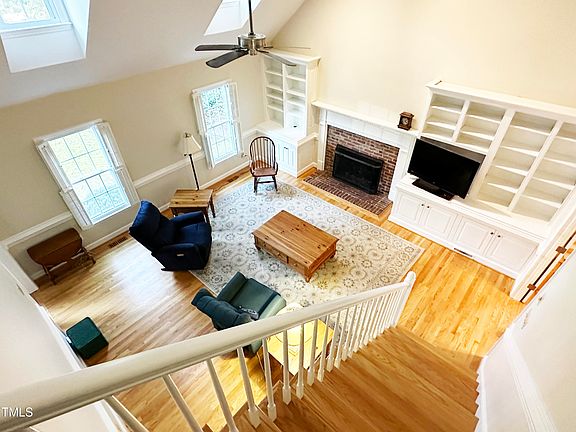 Top Pick - Rare Find - Beautiful well-maintained home located on a culdesac in North Raleigh, convenient to shopping, I-540, I-440, Hwy 70. Great location, featuring an amazing low-maintenance back yard which offers complete privacy overlooking a natural area which you can enjoy on the wonderful screened-in-porch. Features a downstairs master suite with its own private deck, and a spacious living area with cathedral ceilings with remote control blinds, 3 full baths, and a large 4th bedroom on the second floor with tons of storage space - Can be used as a bonus room. Crown molding throughout, gorgeous hardwoods, and fresh paint. Enjoy a warm fire with the gas fireplace with beautiful built-ins. This stunning home is a best value in the middle of everything in a wonderful natural setting.