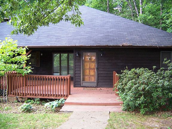 Unique spacious home on beautiful wooded lot. Extensive covered decking great for entertaining. Galley kitchen with swing out pantry. Beautiful stone fireplace in dining room.Great room on lower level with access to garage or patio. Walk-out attic storage.